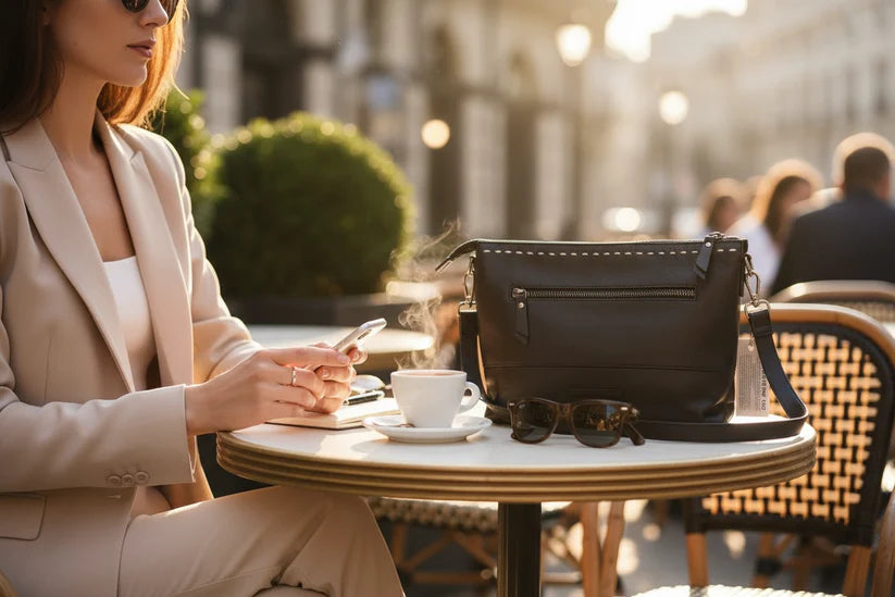 Cosgrove & Co. Gillian - A leather east/west shoulder bag.  It has the convenience of a zip top, two inside sections, back outside zip.
