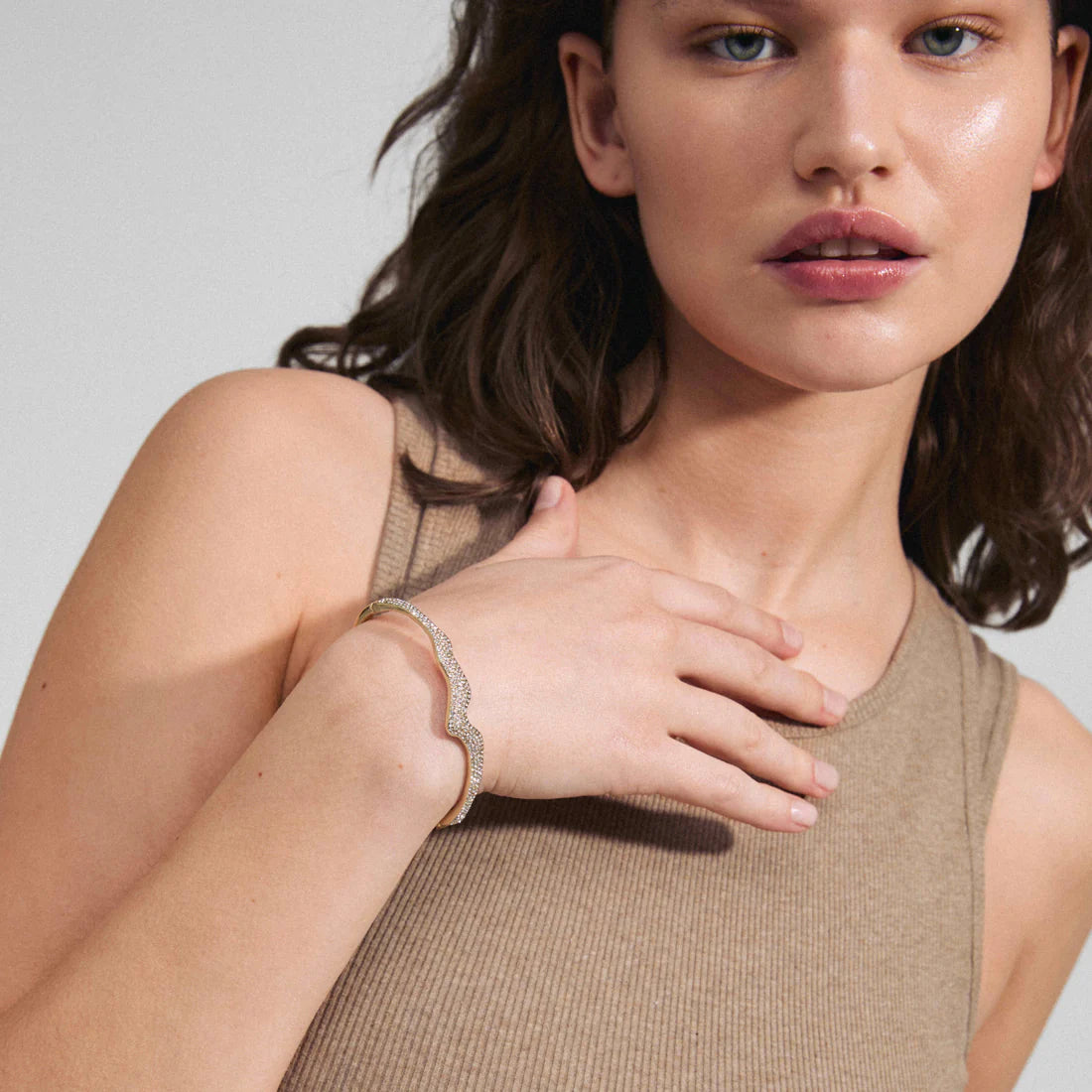 True connections never fade, and the CONNECT bracelet from Pilgrim is here to stay! The gold-plated or silver-plated bangle is your new partner in glam. Trendy with its wavy melting shape and scattered with sparkling Preciosa crystals, it adds a touch of instant class to your look. Equipped with a click clasp for easy on-off, the CONNECT bracelet cuff is your go-to when you want to boost your outfit with a touch of glam. Wrap your wrist in this season's key item and rejoice in the fact that it's made from min 97% recycled material, with our shared planet in mind.