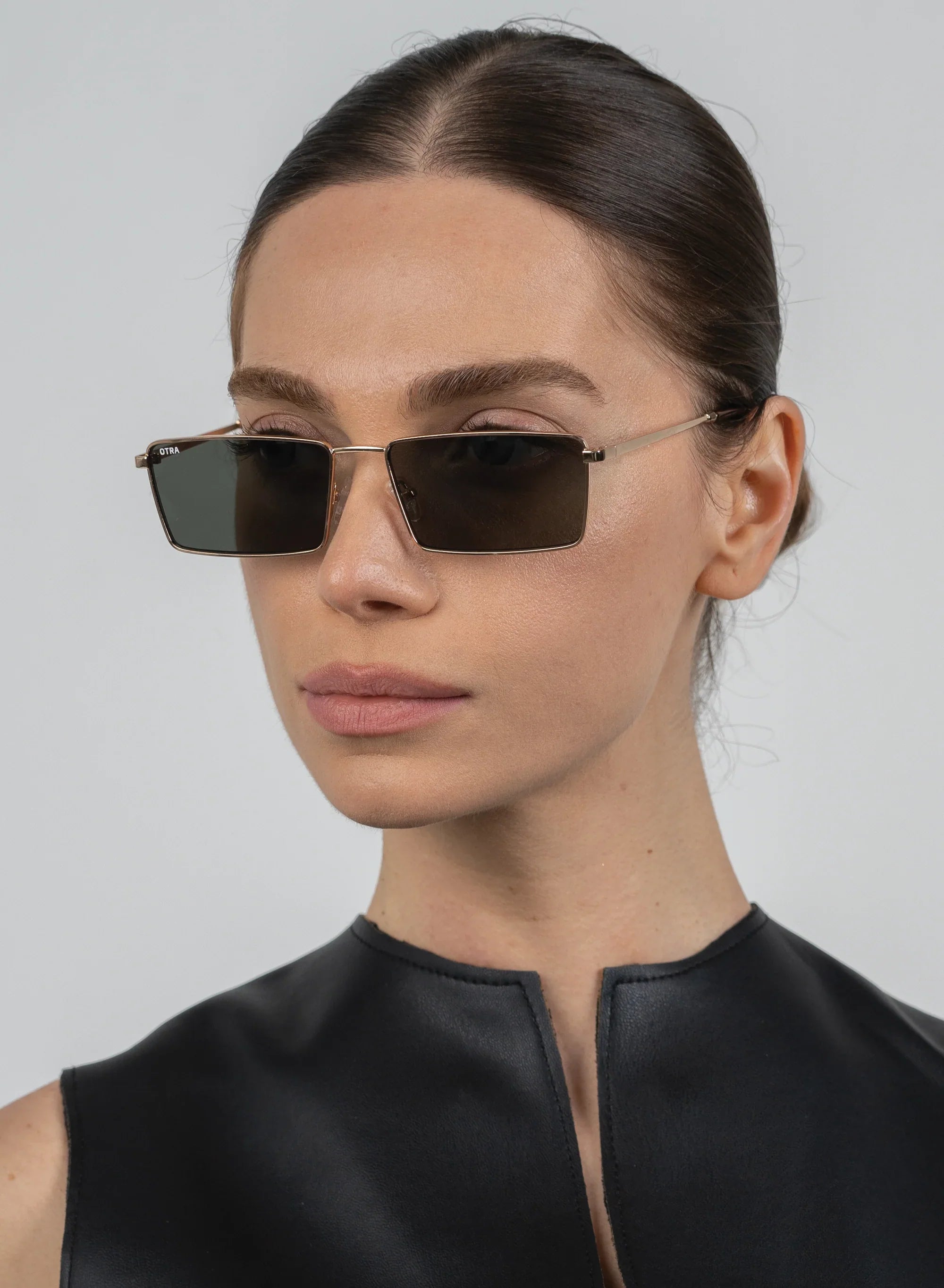 OTRA MARGO - These square metal sunglasses combine a polished gold frame with green lenses, creating a refined and timeless look.